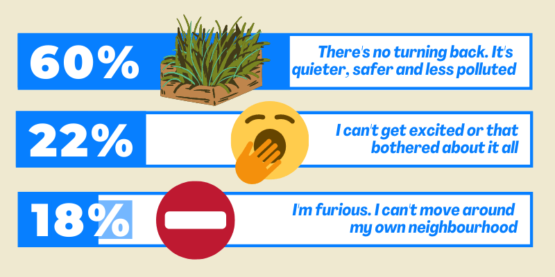 With plenty of moaning about LTNs to be casually overheard across the borough right now, it's striking to see these anonymous poll results revealing widespread acceptance of the new road reality. Could these closures soon become like the smoking ban - where we won't quite be able to believe memories of the recent past including rat runs, idling engines at school gates and car-centric street layouts?