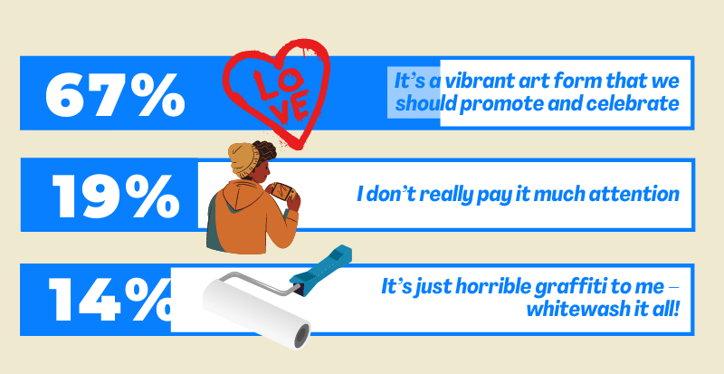 Our most emphatic poll result to date sees 67% of voters backing street art as a welcome part of our urban environment. With the quality of some of the latest pieces along Camden High Street we're not surprised, and look forward to seeing many more, as the area's reputation for such work only grows.