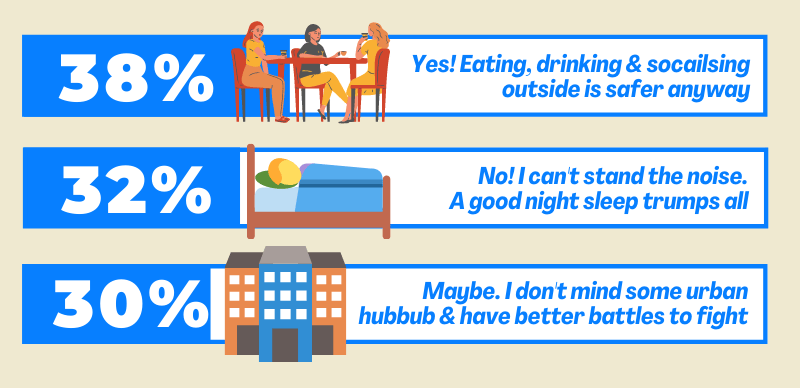 It's the most tightly fought Camdenist poll result to date, with readers fairly evenly split between yes, no and maybe. After many months indoors, the idea of taking a more relaxed attitude to neighbours having fun just tips the scale, probably because we can all see ourselves enjoying an alfresco meal or two at some point. Cheers!
