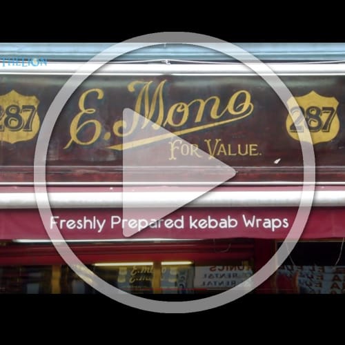 When a ghost sign was uncovered by a Kentish Town Rd kebab shop, (once occupied by dressmaker Eliza Mono) they decided to restore it - and adopt the name. Times food critic and local resident Giles Coren subsequently waxed lyrical about the juicy shawarma and a brand was born, the Victorian era 'logo' appearing above 'bab joints in Camden Town, Finsbury Park and Luton. Now, as the original owner opens a 'Mono' in Holloway, there's a legal battle for the name in this video by halal review site Feed The Lion.